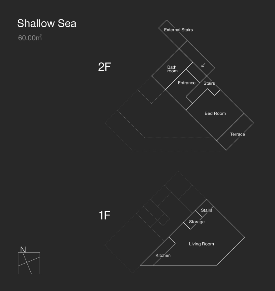 Shallow Sea(浅瀬)と位置付けるこの部屋は2階に海を眺めるベッドルームとバスルームが、